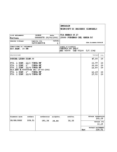 MODULO FATTURA PER PAGAMENTO DEI CLIENTI A MEZZO BONIFICO